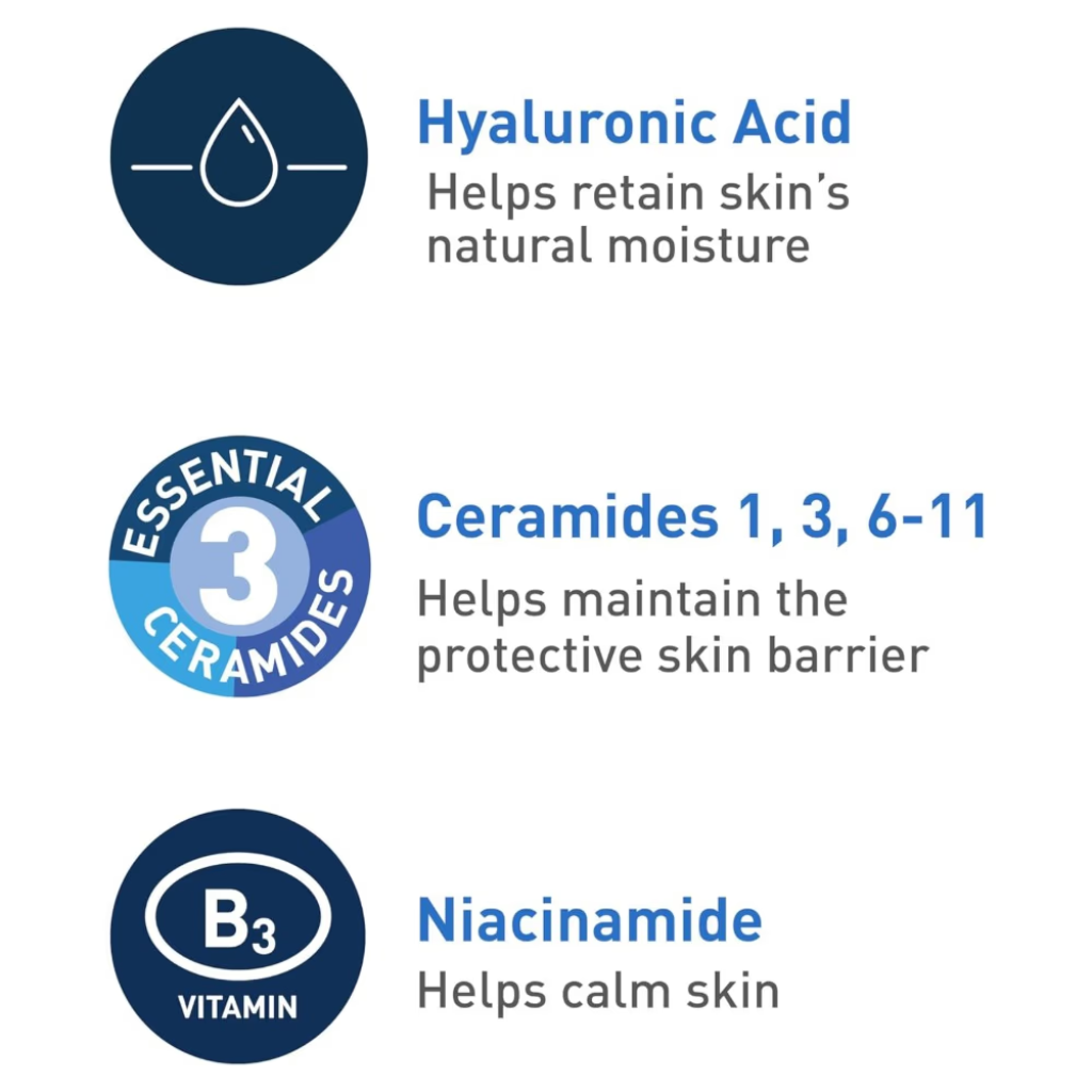 - Contains ceramides to restore and maintain the skin’s natural barrier
