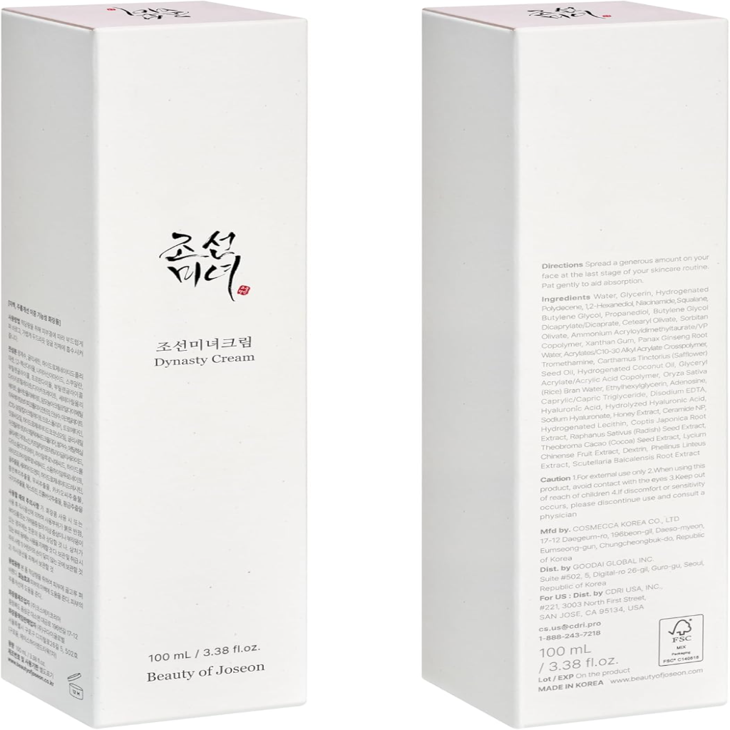 • Radiant Dewy Complexion: Dynasty Cream stands out with its luxuriously dense and firm texture, a hallmark of Beauty of Joseon’s creams. This proprietary texture offers more than just moisture; it delivers a dewy, radiant finish to your skin.
