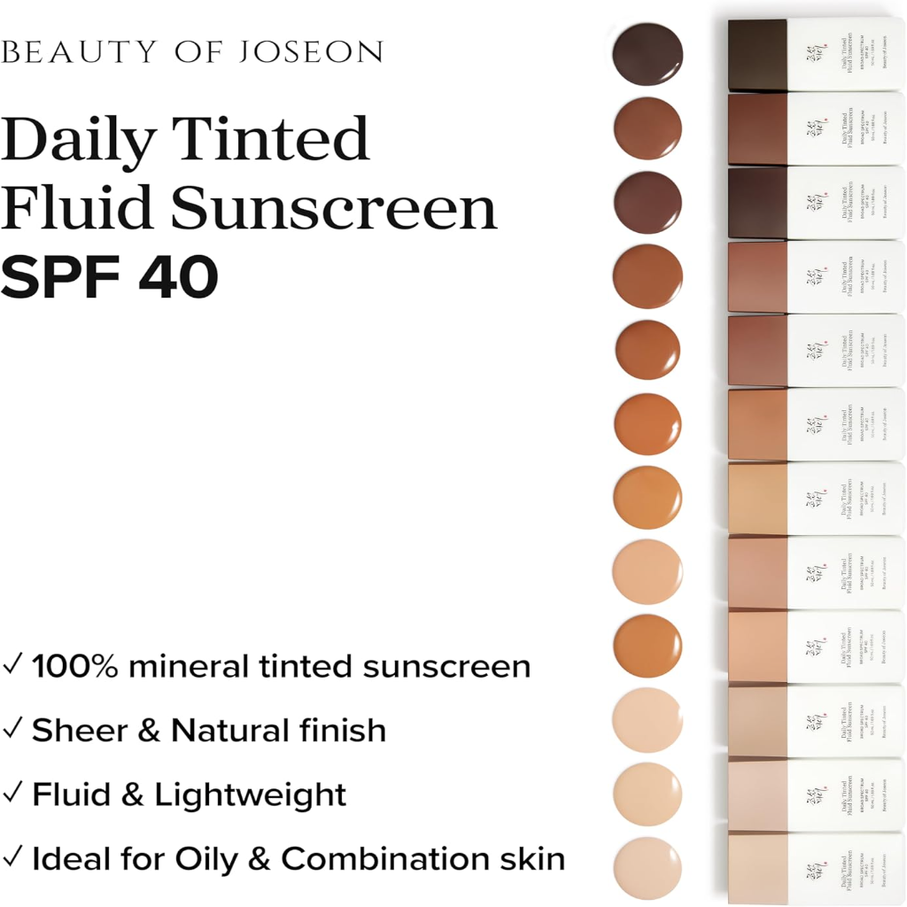 Beauty of Joseon Daily Tinted Fluid Sunscreen 12 Shades for Face Moisturizing Broad Spectrum SPF 40 Korean Skincare 50ml, 1.69 fl.oz #LN110